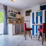 Das Apartment ist mit Selbstversorgungseinrichtungen ausgestattet, einschließlich einer Küche mit einem Wasserkocher, einem Kühlschrank und Küchenutensilien. Die Fahrt zum Flughafen Rijeka dauert 59 Minuten.